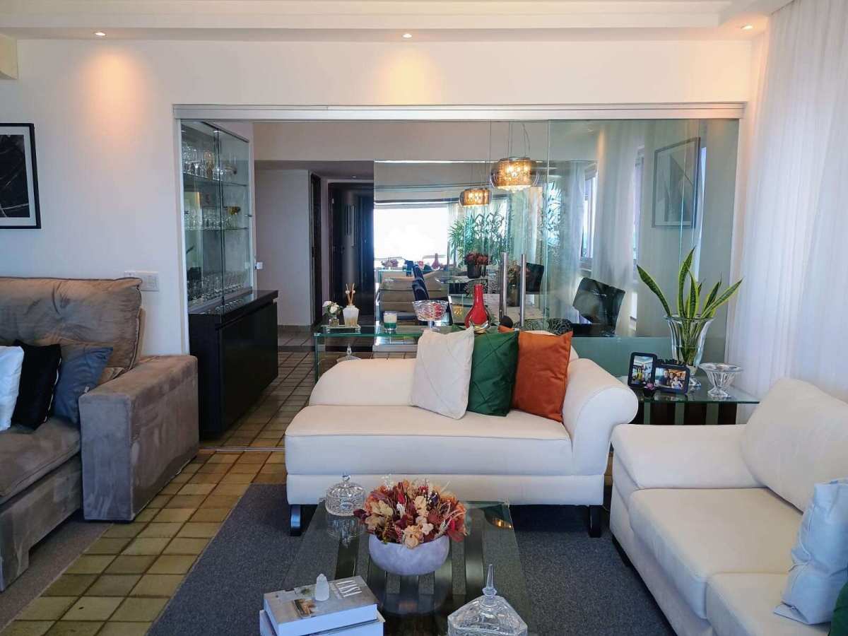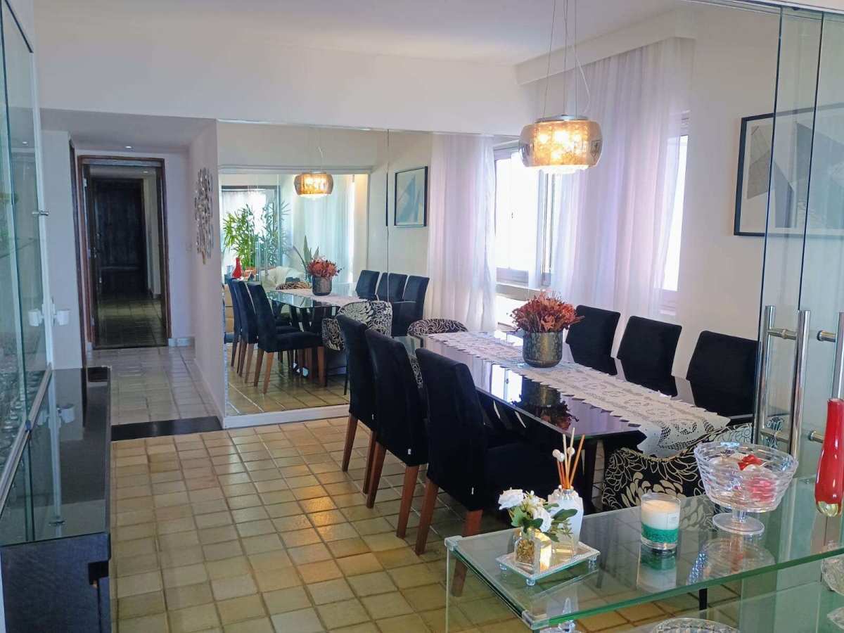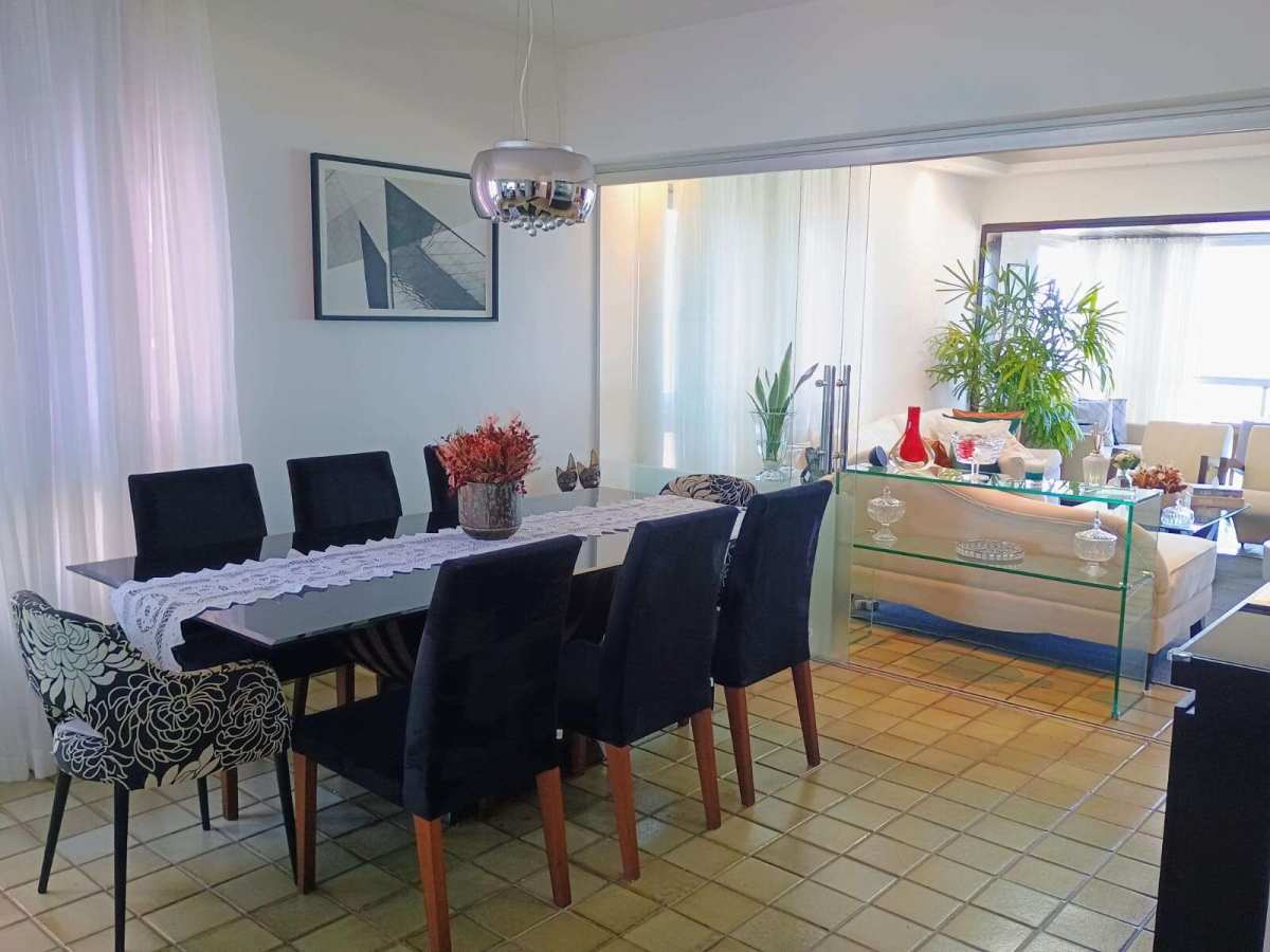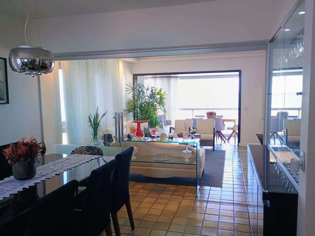 Apartamento amplo com 200,26 m² de área útil | posição nascente com vista maravilhosa mar | varanda ampla e bem confortável | sala de estar para 2 ambientes | Sala de jantar | (04) quartos sendo uma 01 suíte | wc social | lavabo | cozinha com armário | área de serviço | dependência completa | 02 vagas de garagem cobertas.